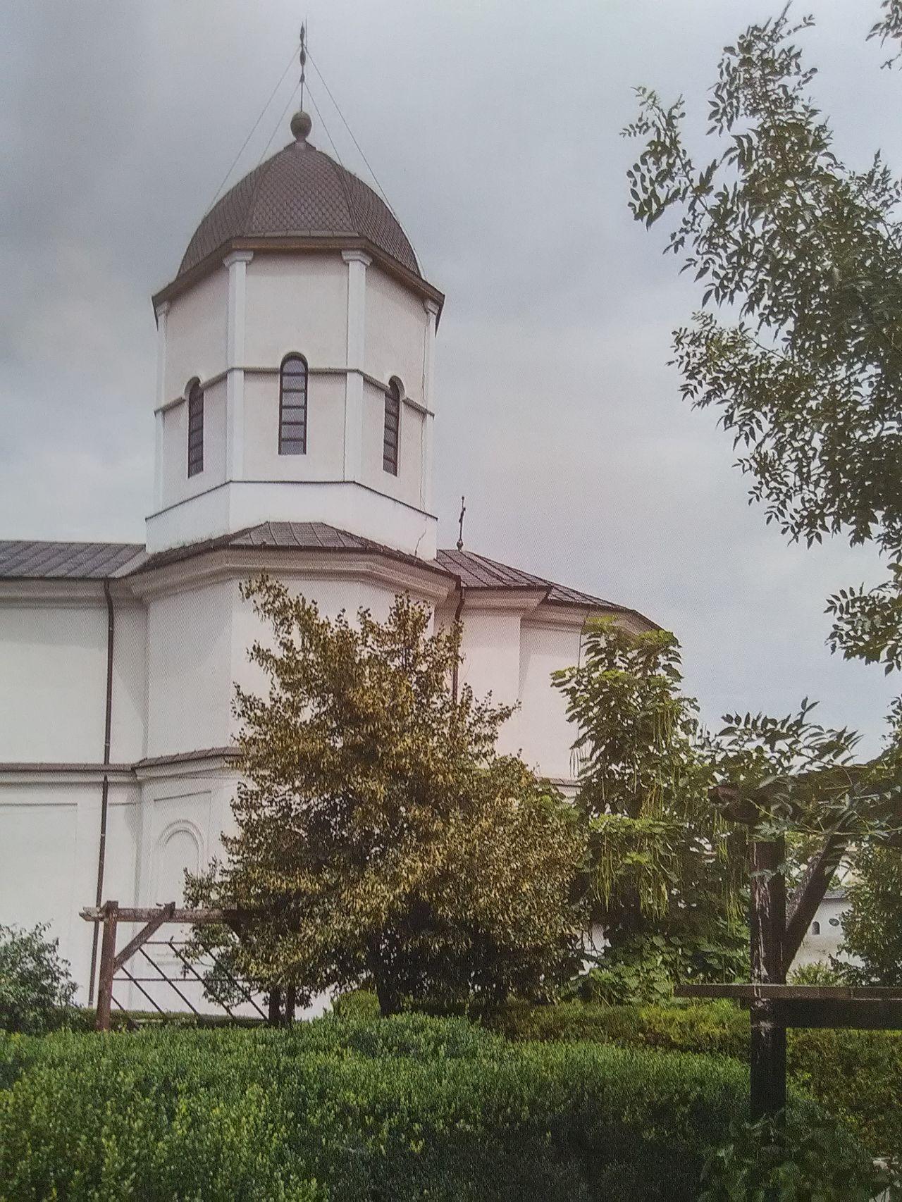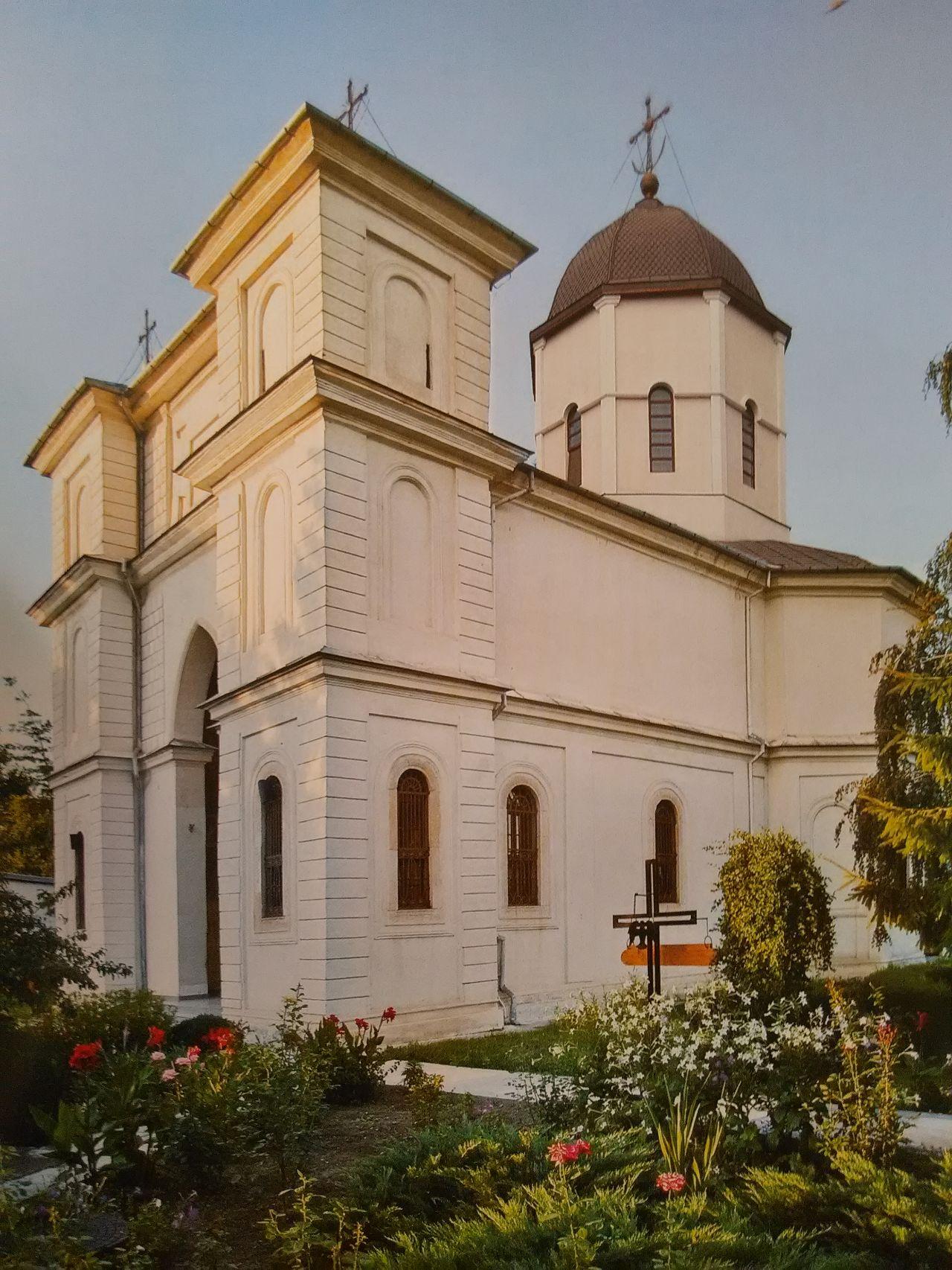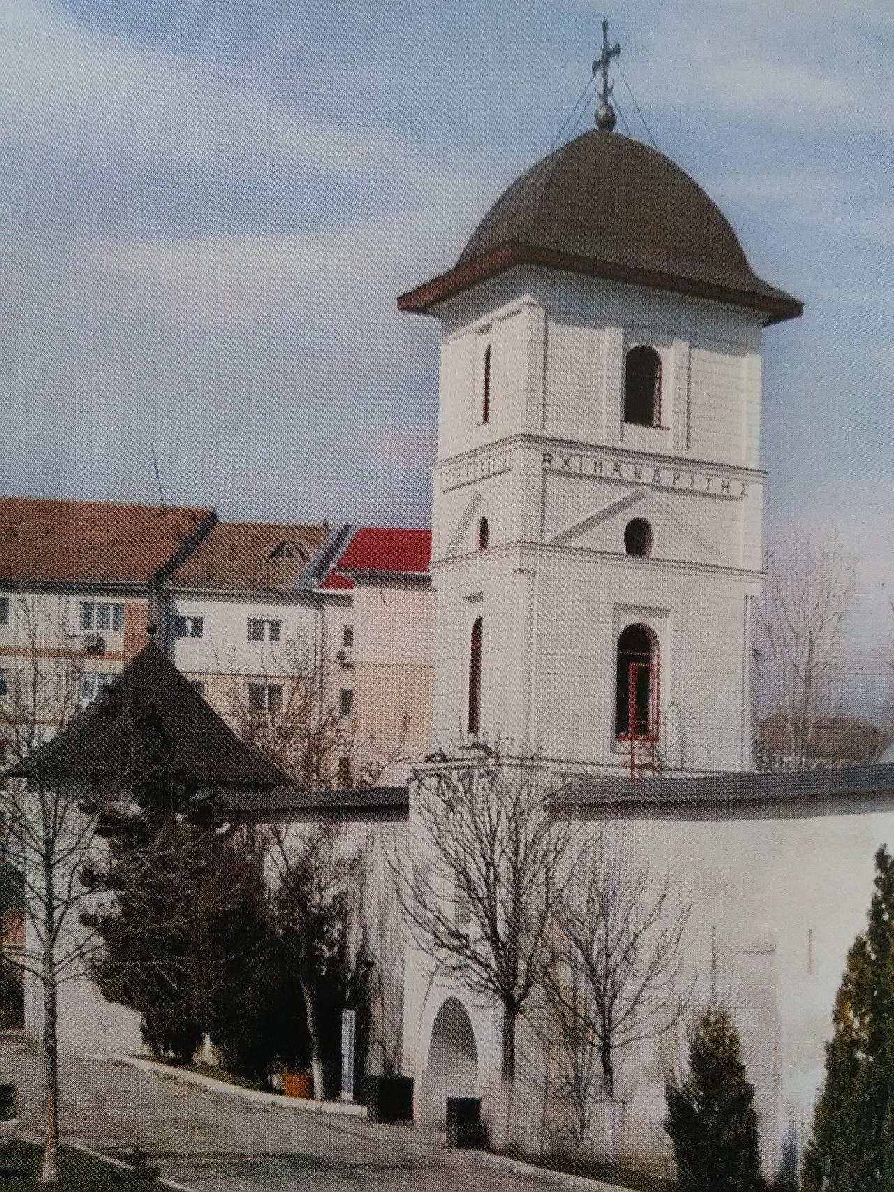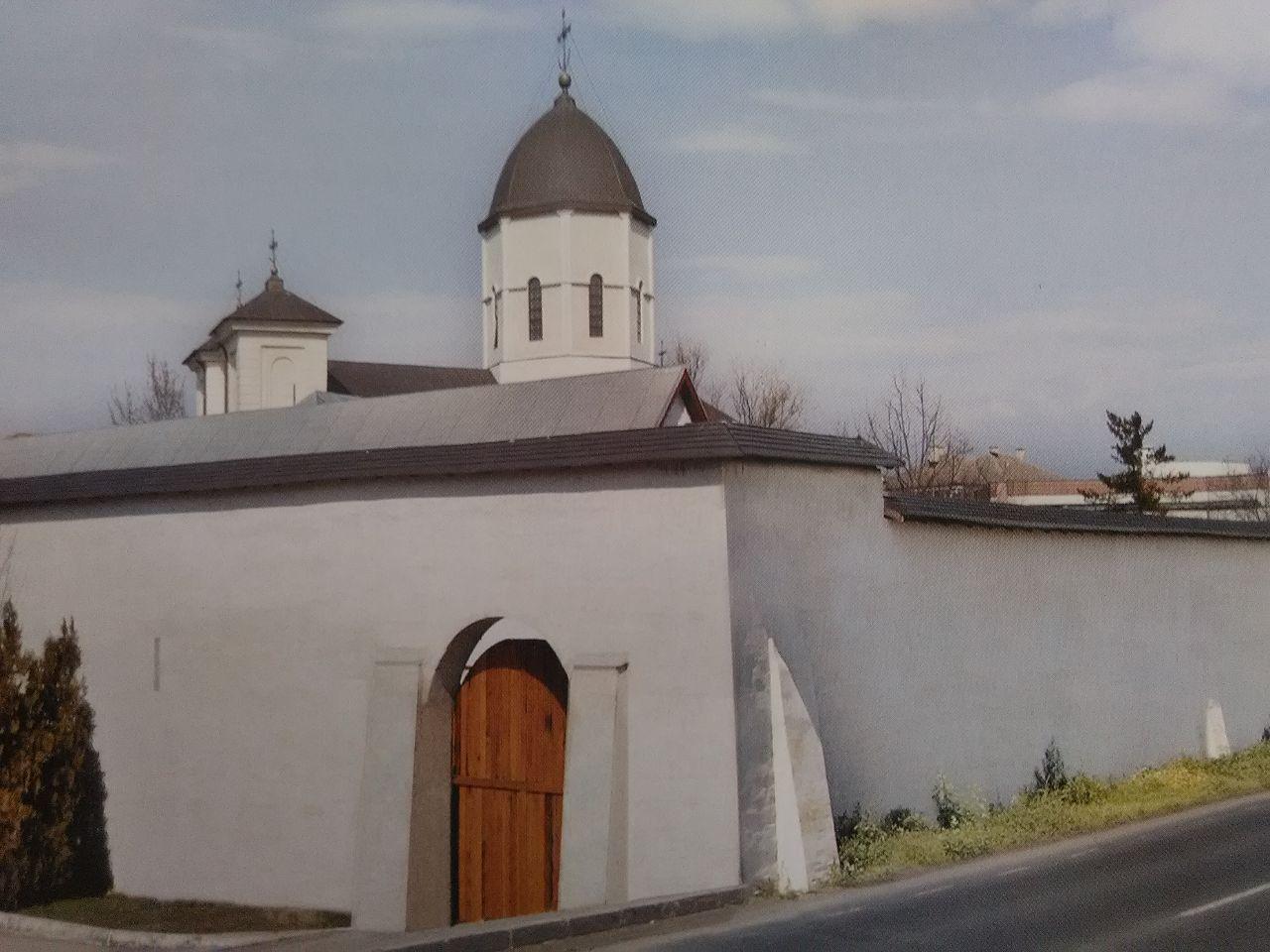 Cu voia Tatălui, cu ajutorul Fiului şi cu săvârşirea Duhului Sfânt, a fost pusă temelia acestui aşezământ monahal, cu hramul Sfinții Voievozi Mihail şi Gavriil, de către postelnicul lanache Caragea şi, la anul Domnului 1634, a fost rezidită de Matei Basarab Voievod. În urma unui cutremur, arhim. Gavriil Smirneanul a înălțat-o din temelie, în vremea domniei principelui Gheorghe Dimitrie Bibescu şi a mitropolitului Neofit, în anul 1842. Noi, binecredincioşii şi întâistătătorii obştilor Sloboziei, Ialomiței şi ai creştinilor ortodocşi din Eparhia Sloboziei şi Călăraşilor, urmaşi ai fericiților ctitori trecuți la Domnul, săvârşit-am reînnoirea acestui sfânt lăcaş. Lucrările de reînnoire a acoperişului cu tablă de cupru au fost finanțate de Centrul Eparhial şi primăria Municipiului Slobozia, iar restaurarea zidurilor exterioare ale bisericii a fost susținută de Consiliul Județean Ialomița. Terminatu-s-au toate acestea în toamna anului 2010, starețul mănăstirii fiind arhimandritul Rafail Mâţ, iar astăzi, 8 noiembrie, anul Domnului 2010, s-au binecuvântat aceste lucrări de către Preasfinţitul Vicenţiu, întâistătătorul Eparhiei Sloboziei şi Călăraşilor, înconjurat de un sobor de preoți şi diaconi. Binecuvântează-i, Doamne, pe cei ce iubesc podoaba casei tale!.