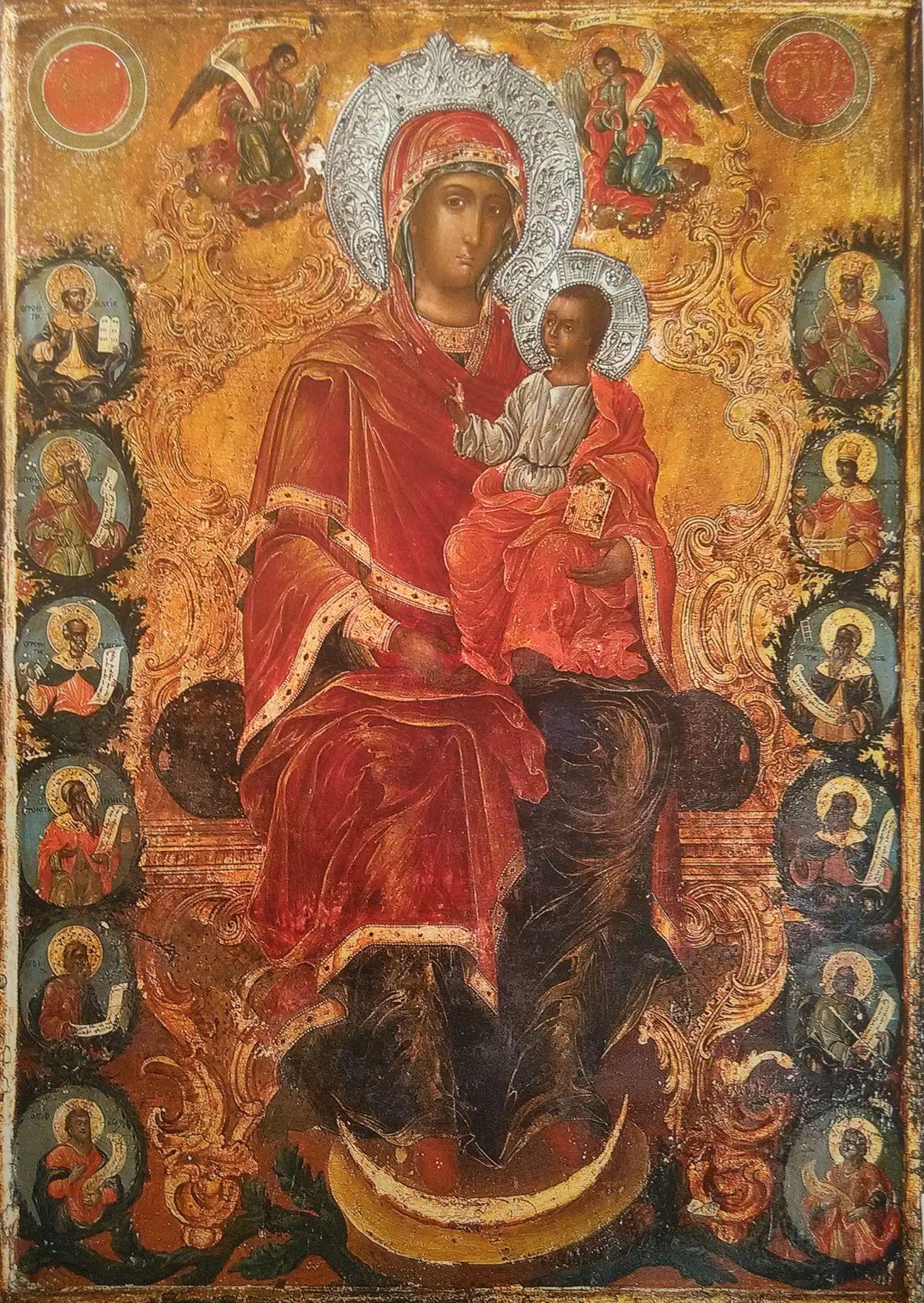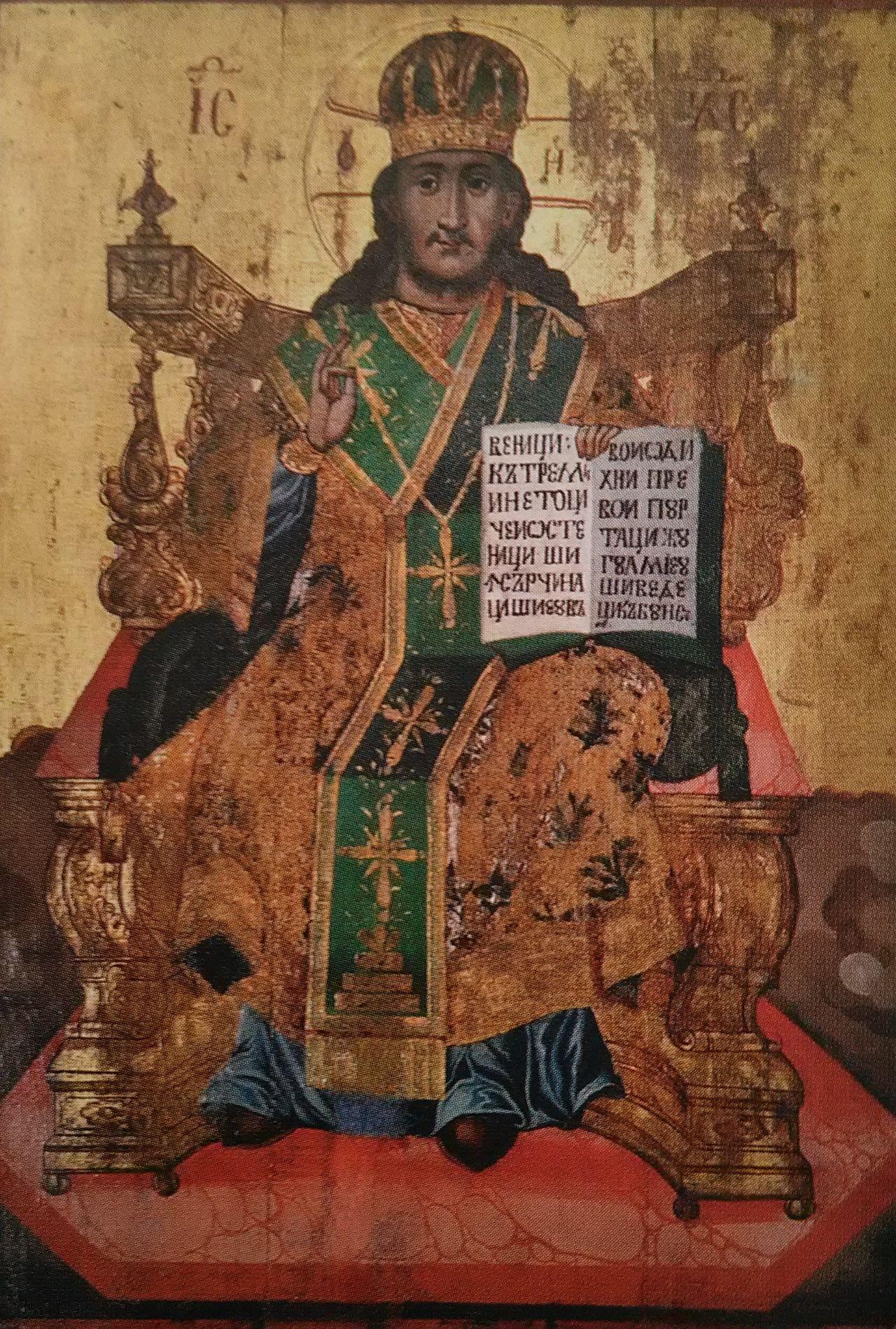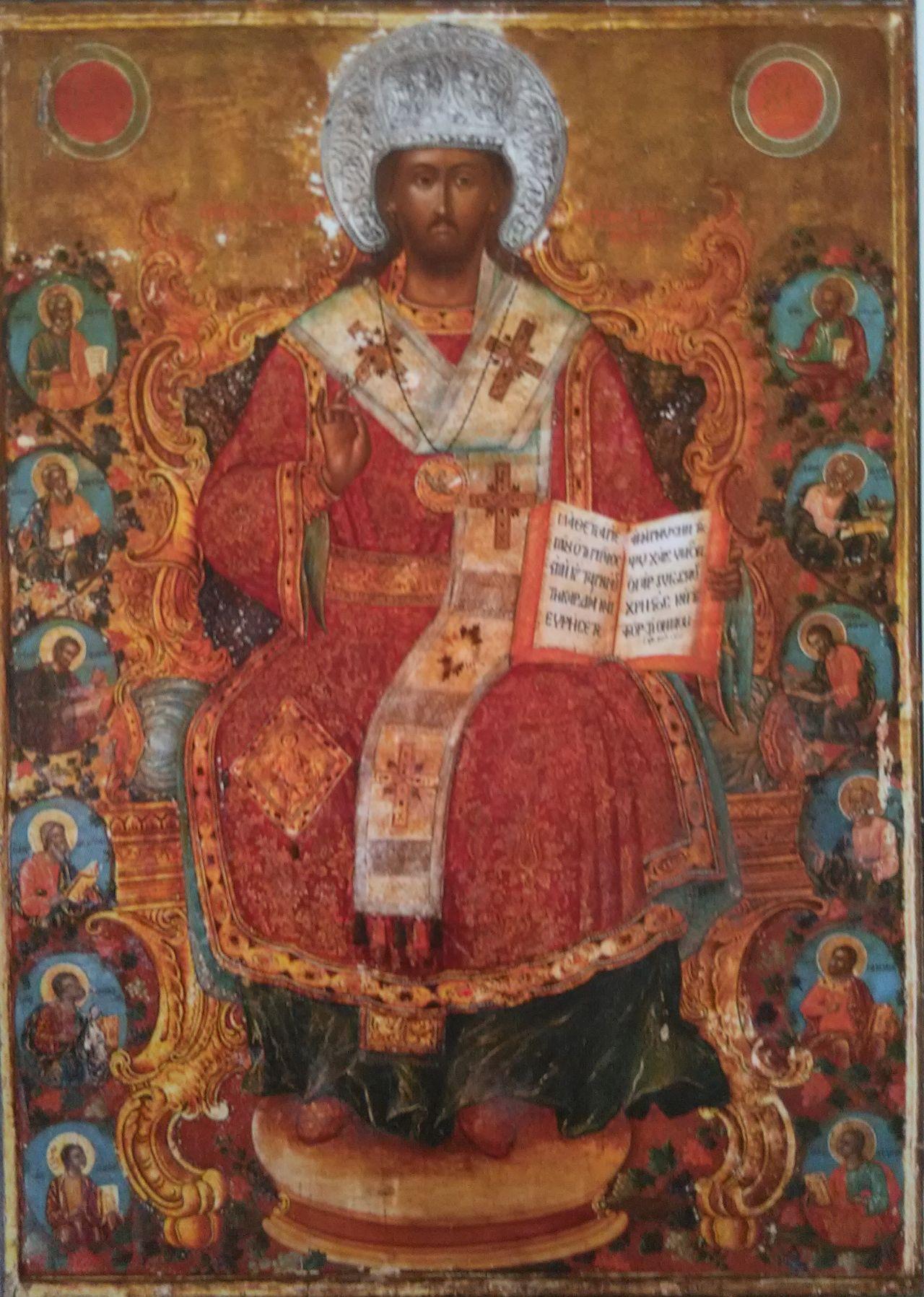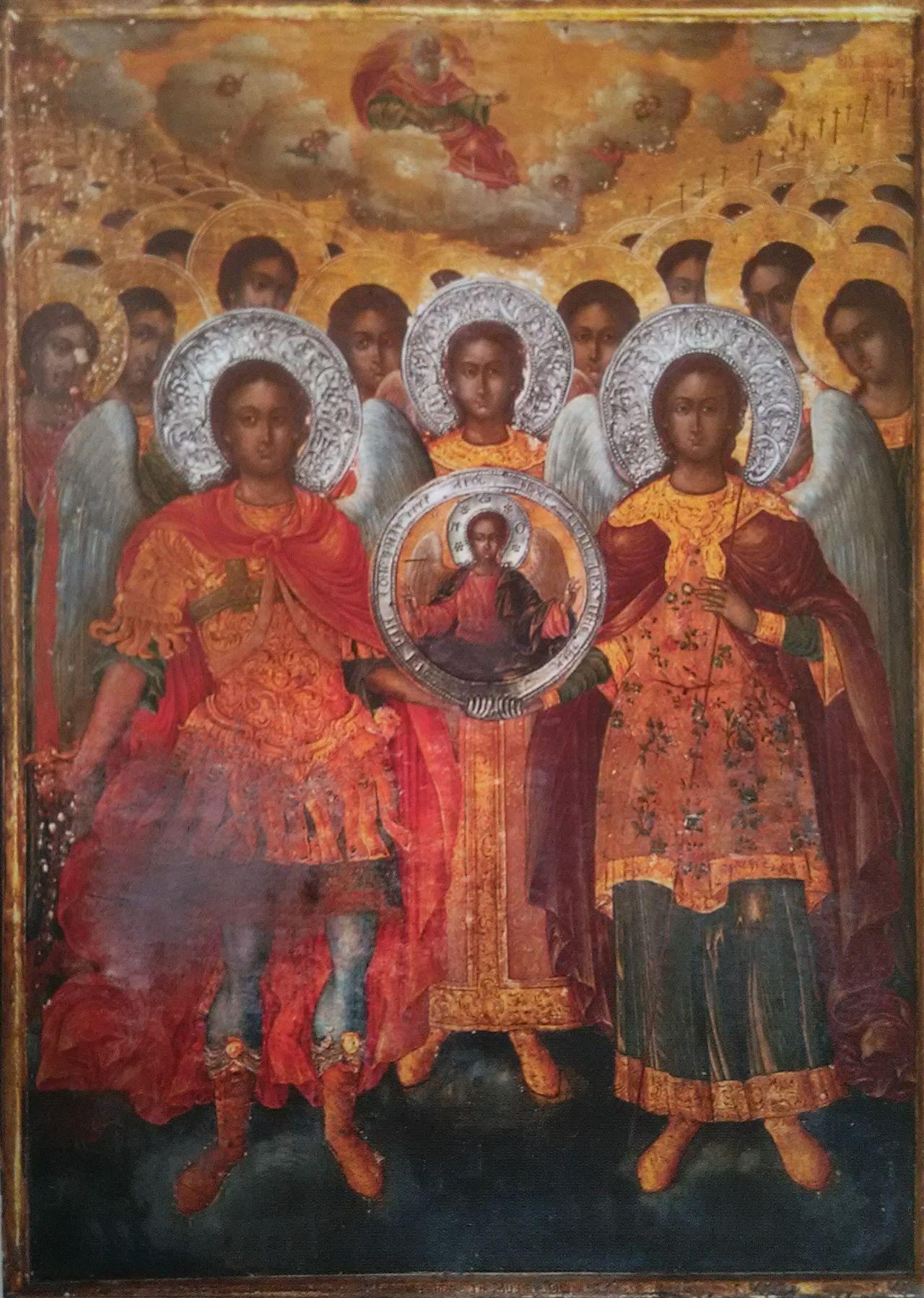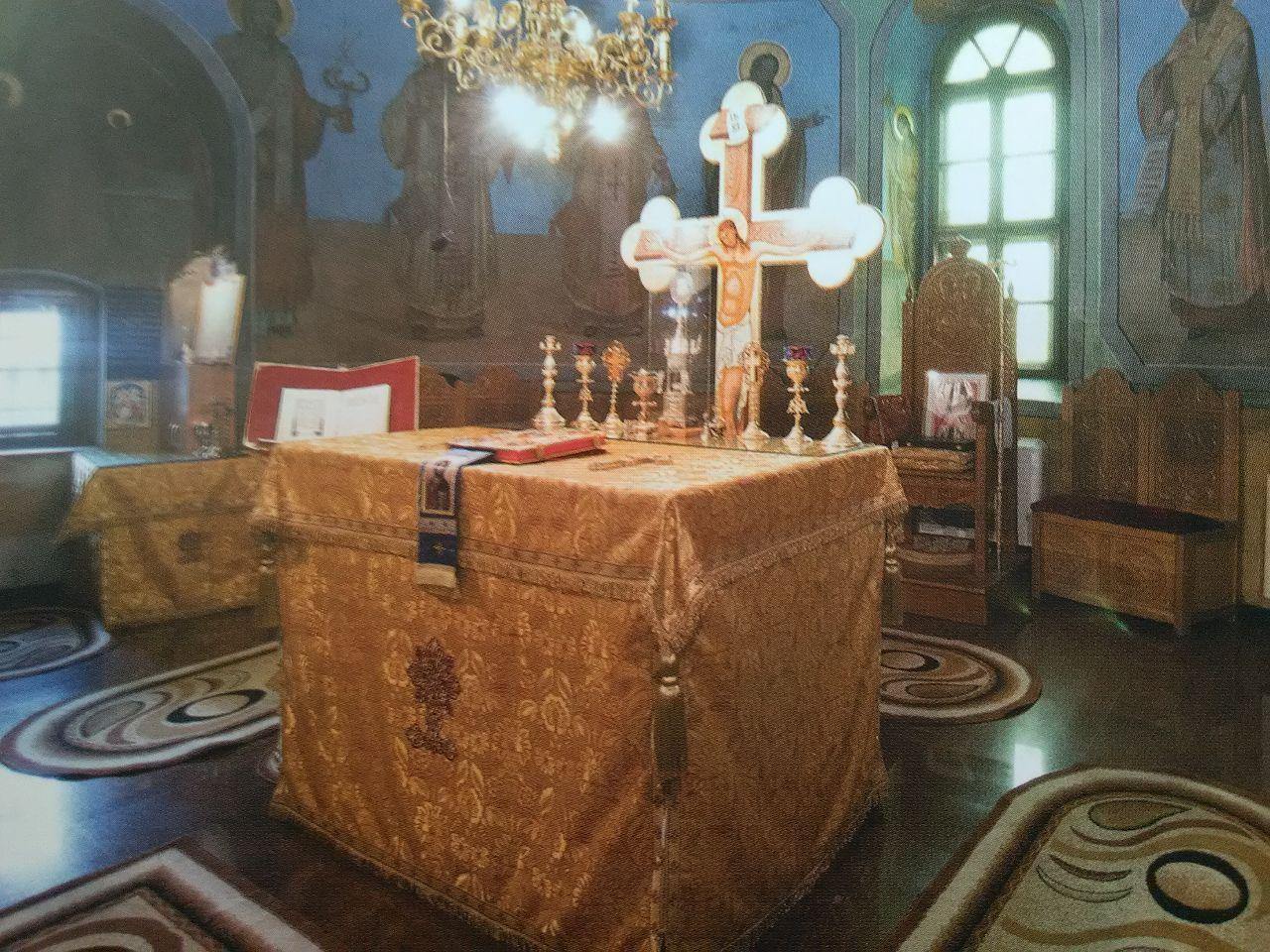 Iconostasul, păstrat până astăzi, datează din prima jumătate a sec. al XIX-lea, fiind realizat în vremea Arhimandritului Gavriil Smirneanul. Păstrează însă, de la vechea biserică, crucea iconostasului, datând din sec. al XVII-lea. Realizat din lemn şi stucatură, iconostasul cuprinde în colțurile de sus tablourile Sfinţilor Voievozi Mihail şi Gavril, iar în părţile laterale icoanele celor doisprezece prooroci, câte şase de fiecare parte, cu mențiuni în limba greacă. Tot în părţile laterale sunt şi icoanele celor doisprezece apostoli, de asemenea cu mențiuni în limba greacă. Cu ocazia reparațiilor din cursul sec. XX, au dispărut pietrele de mormânt existente încă înaintea primului război mondial şi datate din sec. al XVIII-lea, precum şi lespedea funerară a Arhimandritului Gavriil Smirneanul (1854, oct.30).