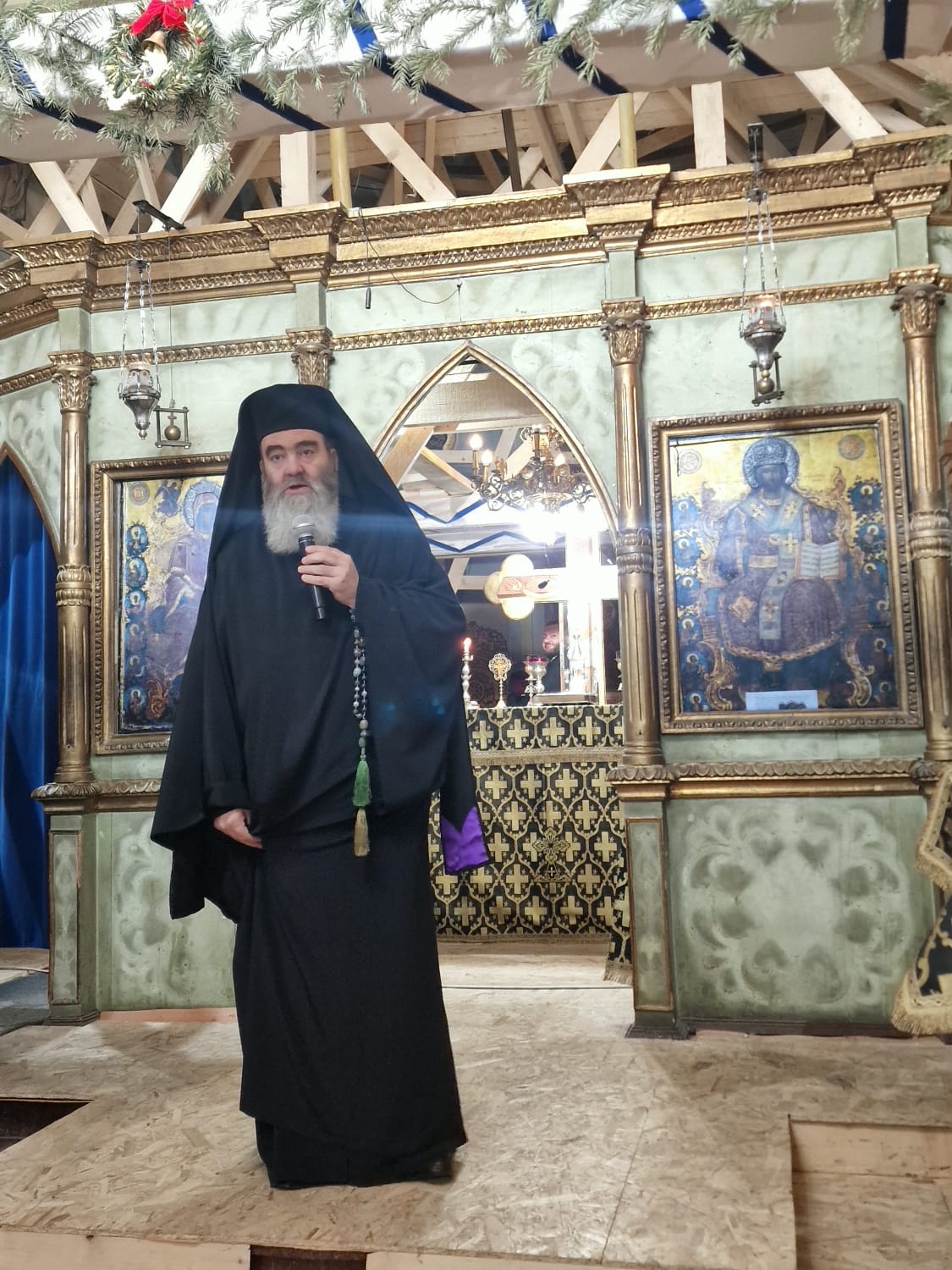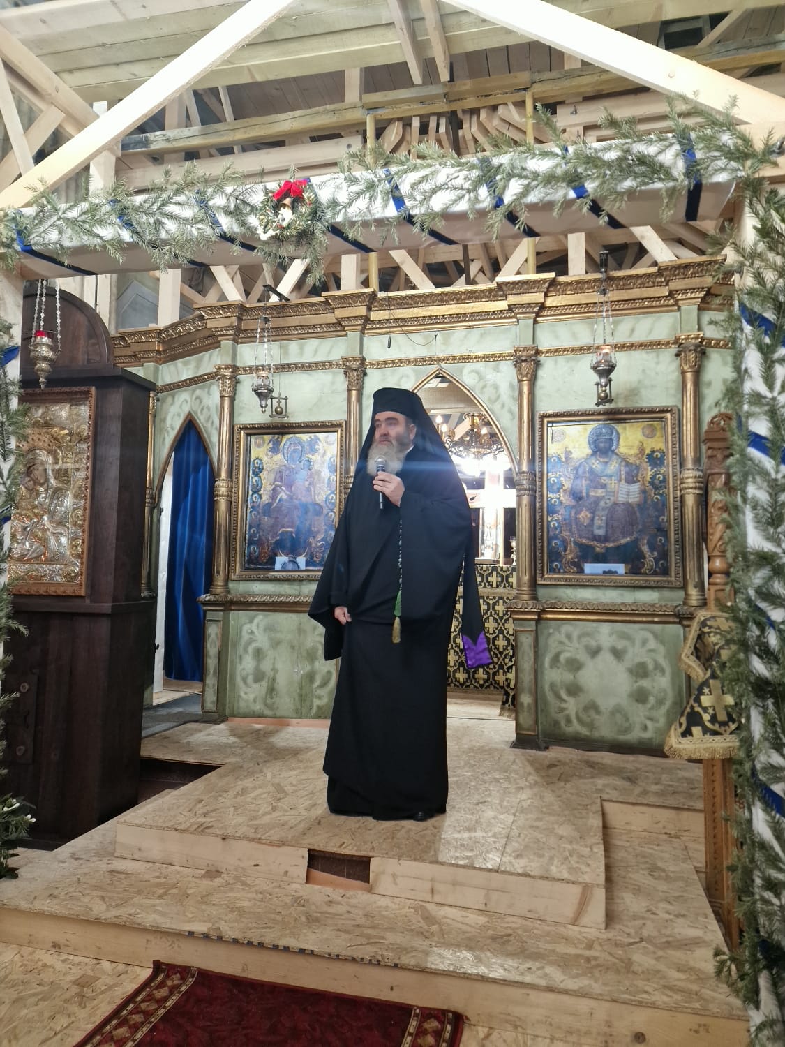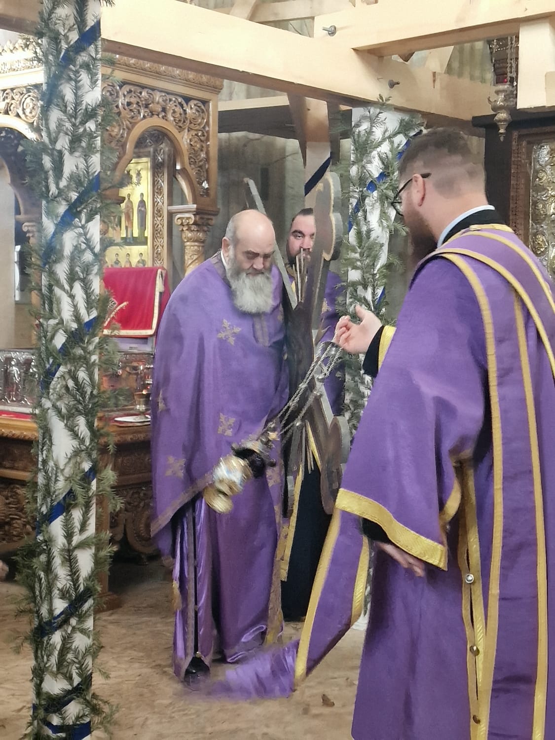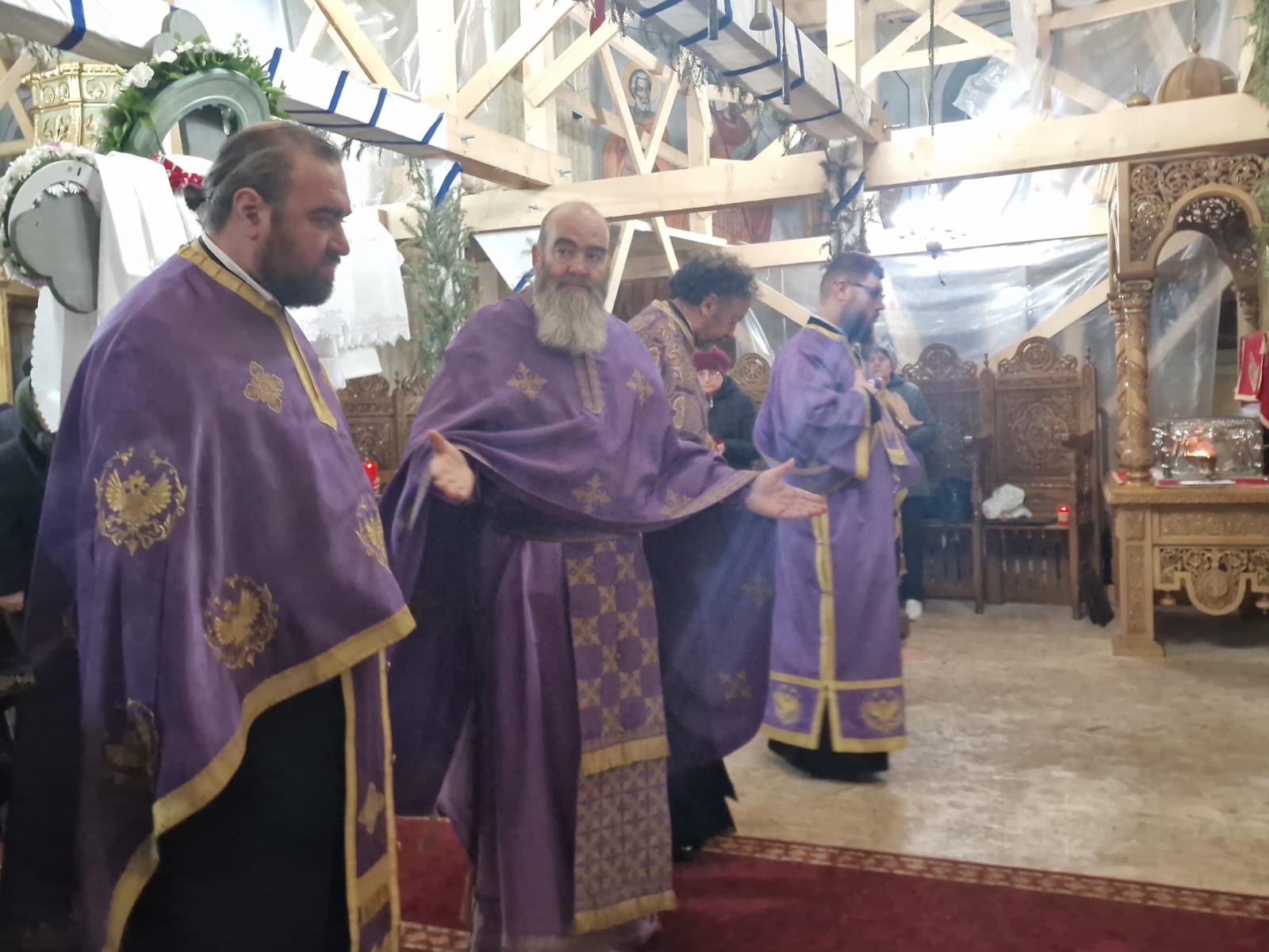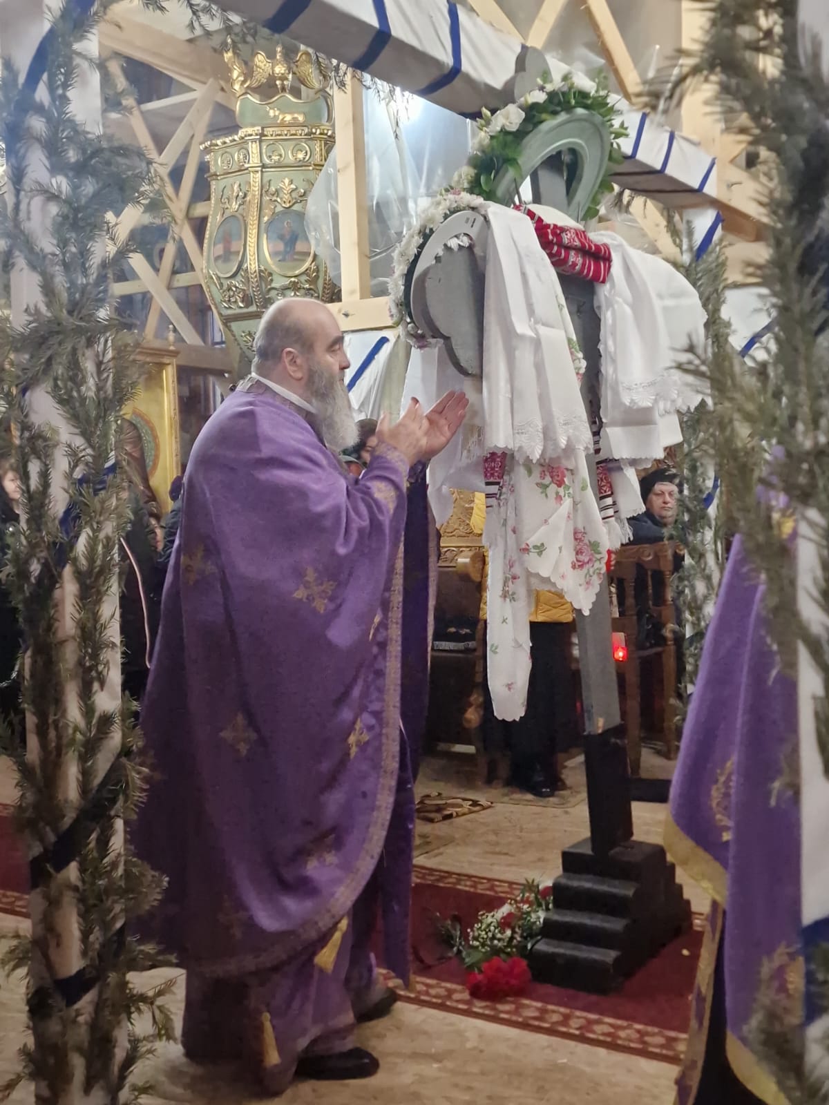 Slujba a fost oficiată de părintele arhimandrit Rafail, starețul așezământului monahal și vicar eparhial, împreună cu obștea mănăstirii.